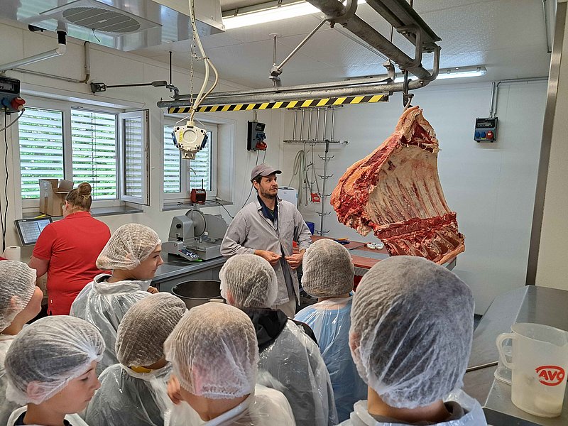 Schüler und Schülerinnen besuchen Metzgerei Weiß in Pullenreuth